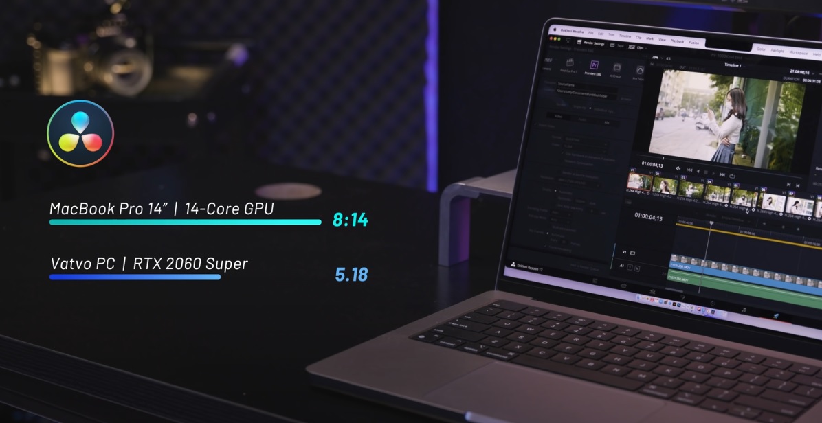 So ngay với bộ PC mình thường Edit, cấu hình là Core i7-10700 (8 core, 16 thread), RTX 2060 Super, 32GB Ram thì thậm chí chiếc Macbook Pro 14 nhanh hơn tận 2 lần. Mình biết các bạn nghĩ gì, nhưng chính mình cũng phải bất ngờ vì sức mạnh của M1 Pro. Tuy nhiên, chuyển sang Davinci Resolve, một phần mềm ăn rất nhiều GPU thì M1 Pro đã lộ ra điểm yếu của mình. Chỉ có 14 nhân GPU nên thao tác xử lý của nó chưa được mạnh mẽ. Quá trình mình kéo màu cũng có cảm giác bị khựng và đôi khi nó còn bị lag. Tuy nhiên, mình vẫn đánh giá sức mạnh của M1 Pro thì nó vẫn là chiếc Macbook cực kỳ mạnh mẽ, rất phù hợp cho anh em nào làm media giống như mình.