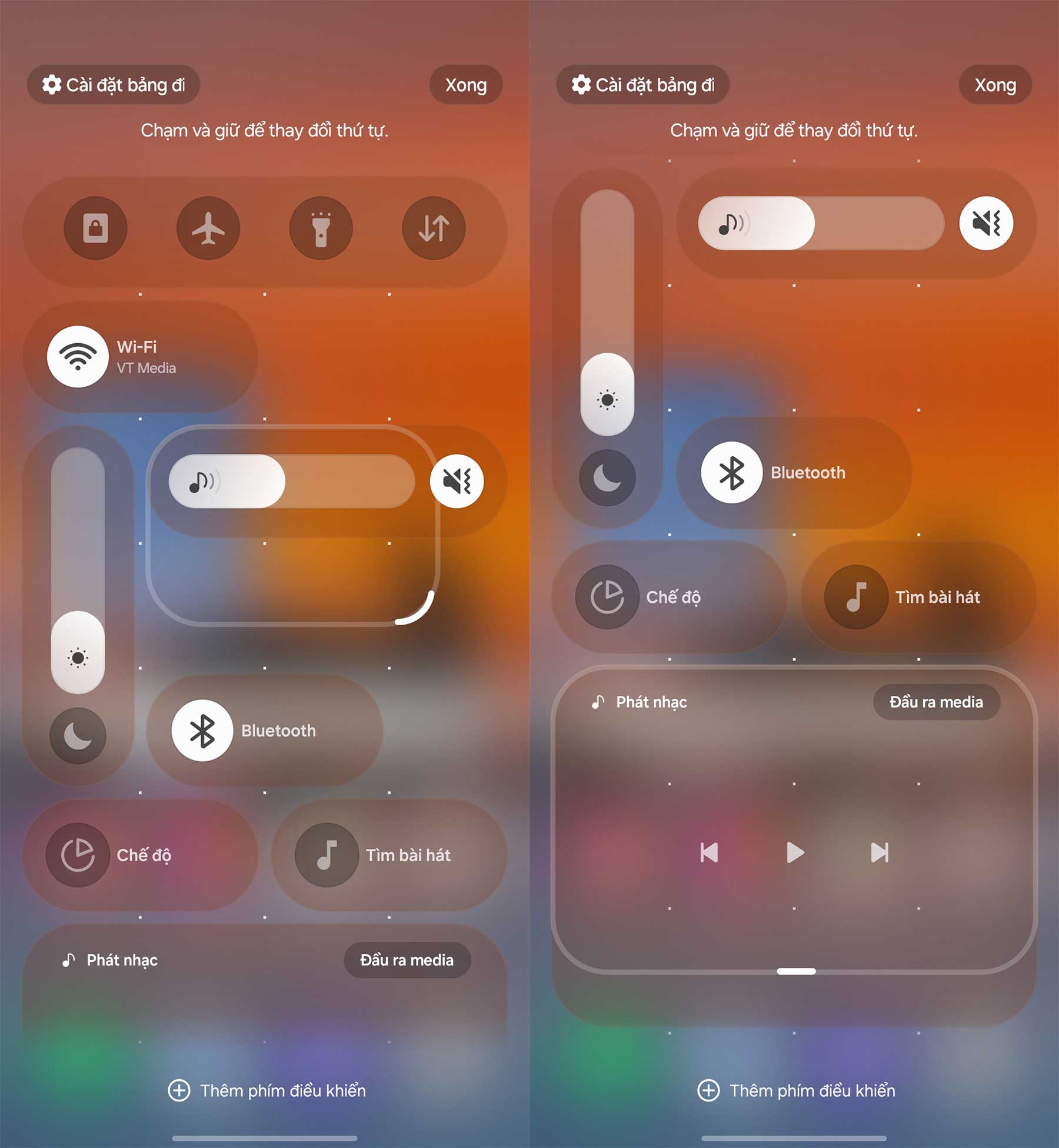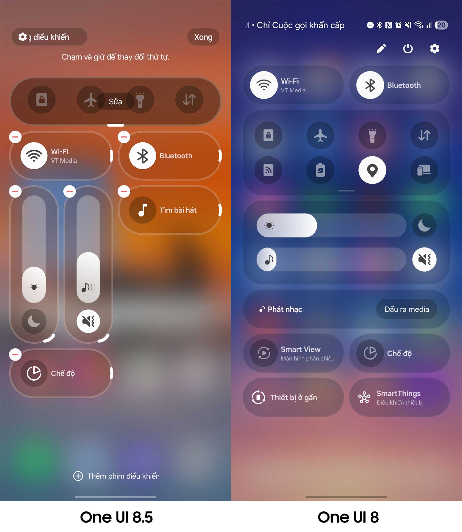 Trước đây, người dùng thường phàn nàn về việc các thanh điều chỉnh độ sáng hay âm lượng bị đặt ở những vị trí khó với tới khi sử dụng một tay. Hoặc đơn giản là bố cục của chúng không thuận mắt, chưa đạt sự trực quan cao nhất. Trên One UI 8, Bluetooth và Wi-Fi thường bị dính liền vào nhau ở một cụm phía trên, người dùng chỉ có thể thay đổi vị trí lên xuống chứ không thể tách rời chúng.