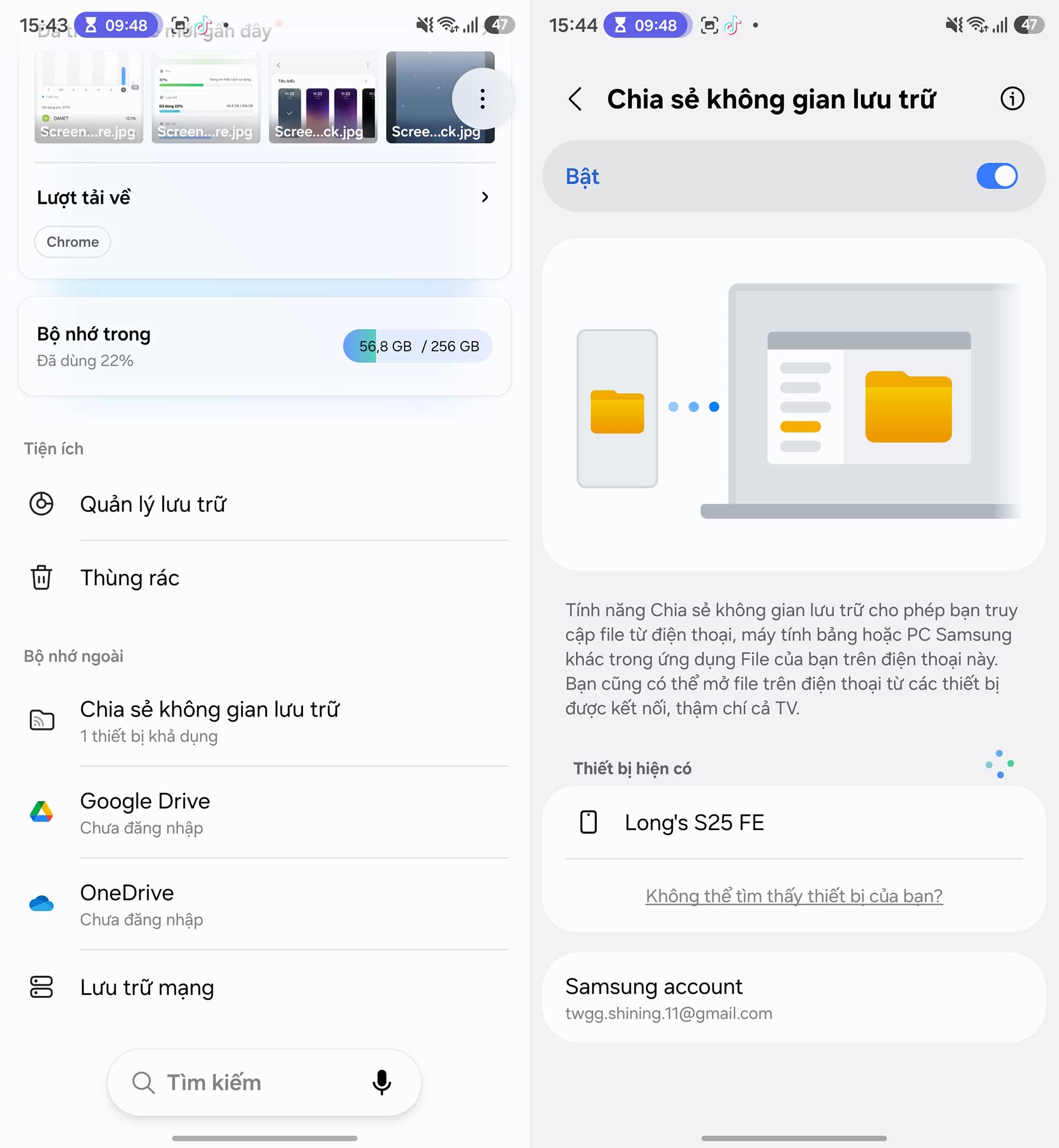 Bên cạnh giao diện, One UI 8.5 Beta trên Galaxy S25 Ultra còn mang đến những tính năng thực dụng, tận dụng sức mạnh của hệ sinh thái Samsung. Đáng chú ý nhất là tính năng Chia sẻ bộ nhớ (Shared Storage). Tính năng này cho phép bạn truy cập dữ liệu giữa các thiết bị Samsung đăng nhập cùng tài khoản Samsung Cloud một cách liền mạch.