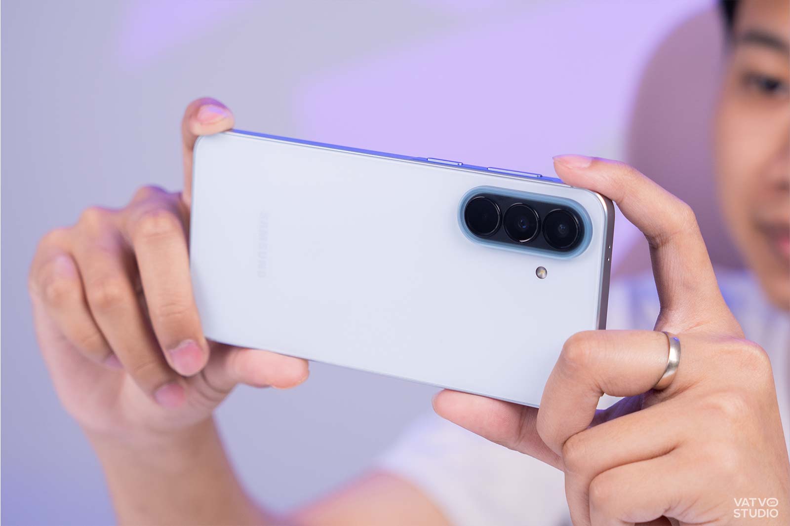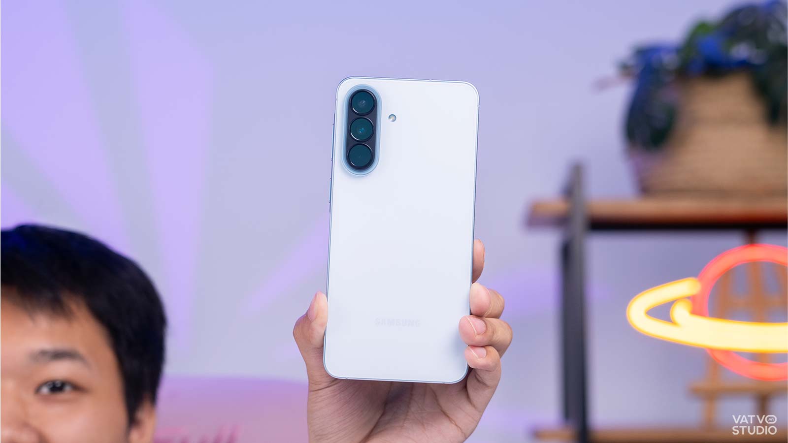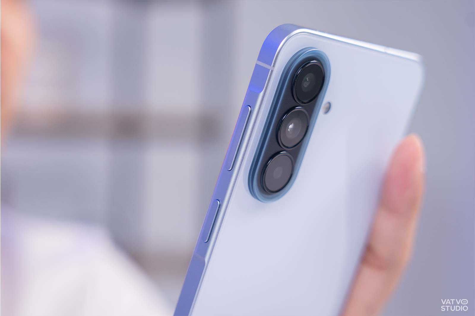 Không chỉ tối ưu viền màn hình, máy còn gây ấn tượng với độ mỏng rất tốt trong dải sản phẩm Galaxy A. Cụ thể, thiết bị có độ mỏng chỉ 6,9 mm. So với độ mỏng 8,2 mm của những mẫu máy cũ như Galaxy A54, sự chênh lệch là rất rõ rệt. Cảm giác cầm nắm thiết bị trên tay trở nên nhẹ nhàng, thoải mái và linh hoạt. Người dùng có thể dễ dàng bỏ máy vào túi quần mà không bị cộm.