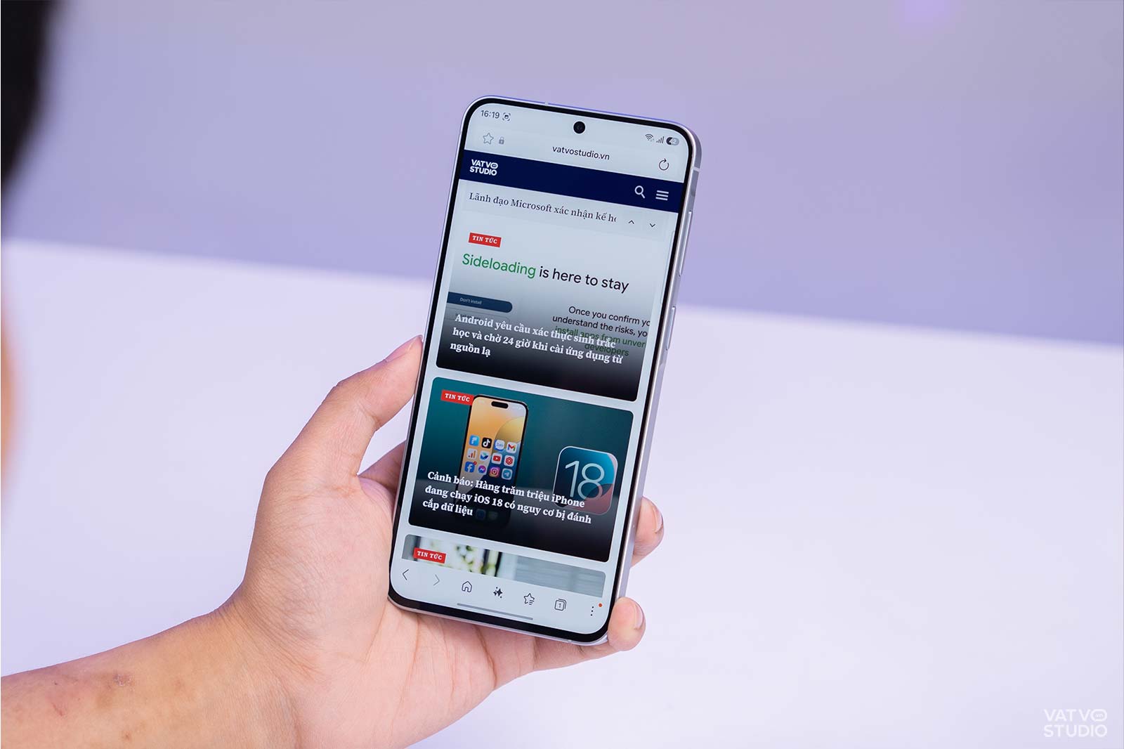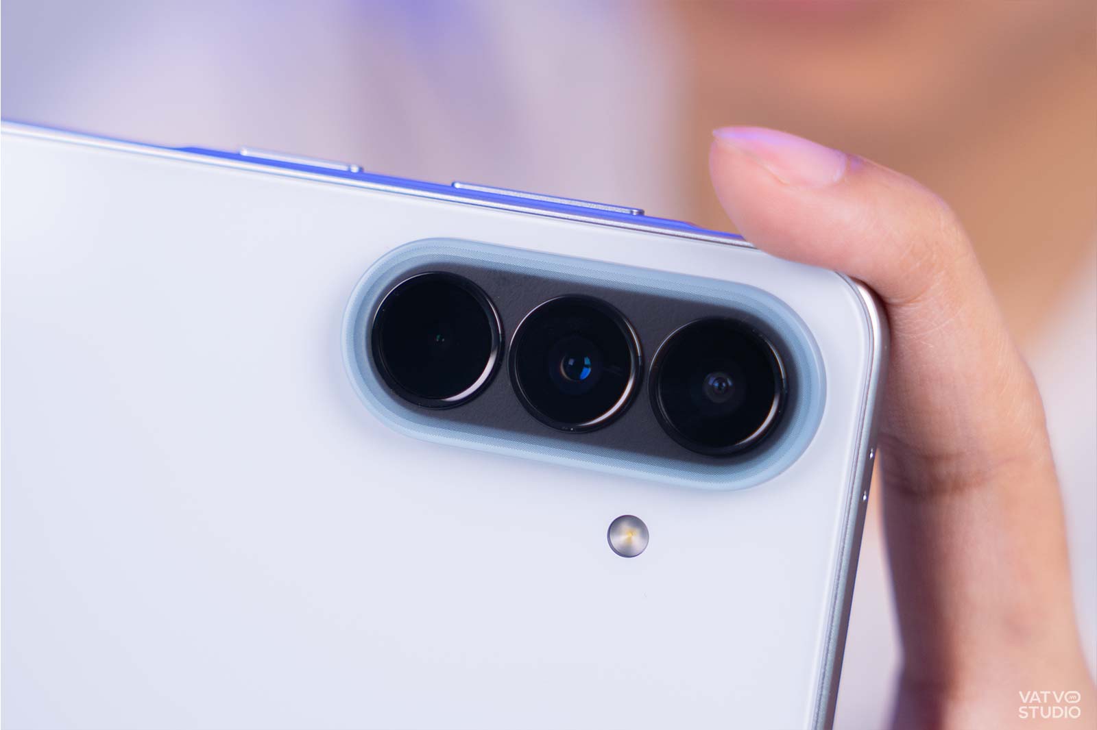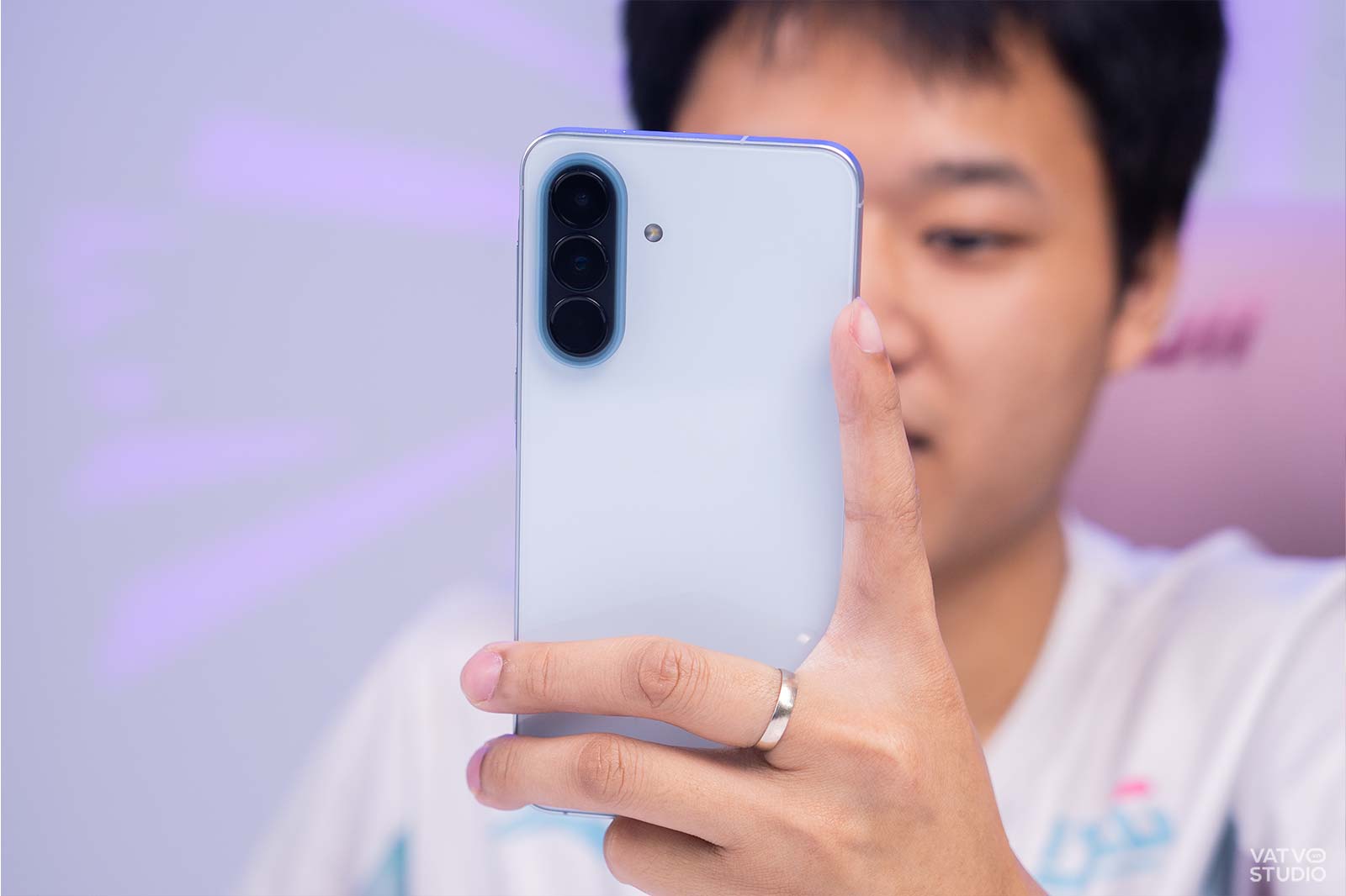 Không chỉ tối ưu viền màn hình, máy còn gây ấn tượng với độ mỏng rất tốt trong dải sản phẩm Galaxy A. Cụ thể, thiết bị có độ mỏng chỉ 6,9 mm. So với độ mỏng 8,2 mm của những mẫu máy cũ như Galaxy A54, sự chênh lệch là rất rõ rệt. Cảm giác cầm nắm thiết bị trên tay trở nên nhẹ nhàng, thoải mái và linh hoạt. Người dùng có thể dễ dàng bỏ máy vào túi quần mà không bị cộm.