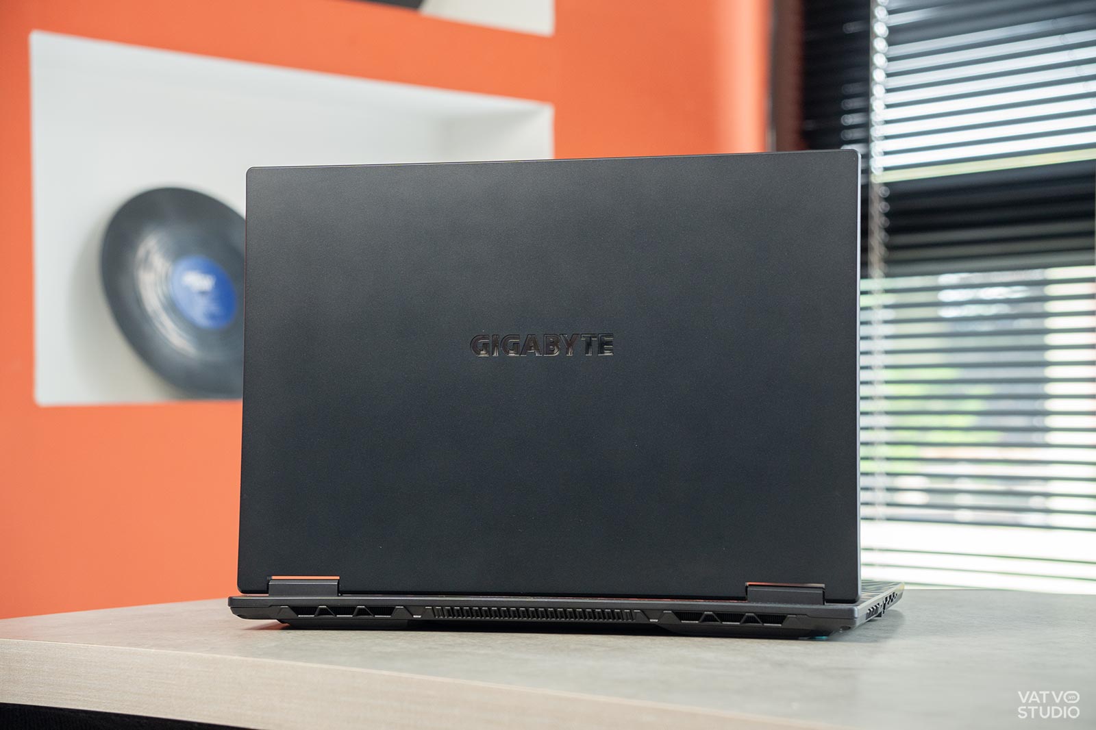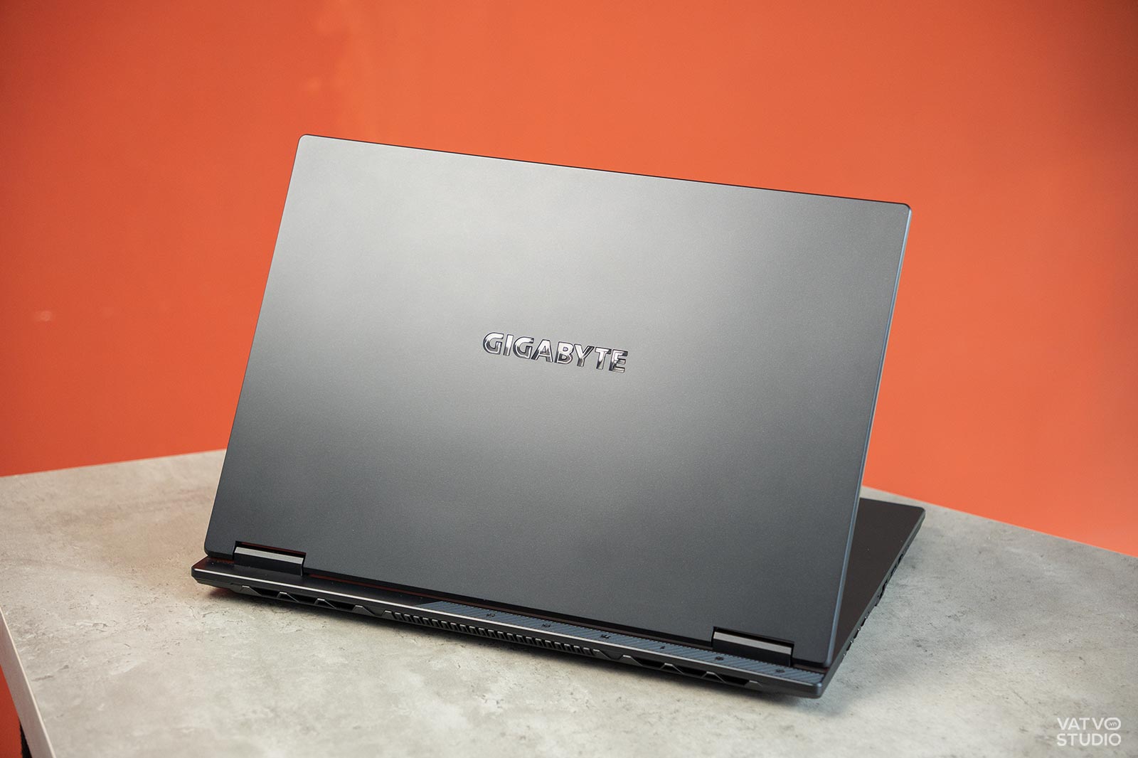 Ngay từ cái nhìn đầu tiên, Gigabyte Gaming A16 đã cho thấy một sự thay đổi hoàn toàn trong ngôn ngữ thiết kế. Thay vì những đường cắt gọt mạnh mẽ, “hầm hố” của thế hệ trước, mặt lưng của A16 giờ đây được làm phẳng, tối giản và cực kỳ hiện đại.