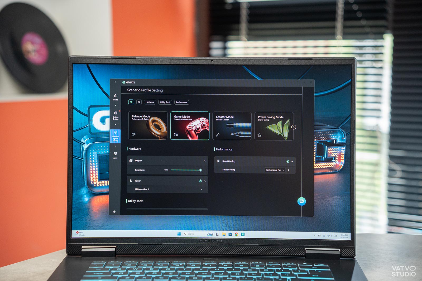 Gigabyte Gaming A16 đã thay thế Gigabyte Control Center cũ bằng một phần mềm điều khiển hoàn toàn mới mang tên GiMATE. Giao diện của GiMATE được làm lại tinh giản, hiện đại và dễ sử dụng hơn rất nhiều, cho phép người dùng dễ dàng tùy chỉnh các chế độ hiệu năng, tốc độ quạt và cập nhật hệ thống.