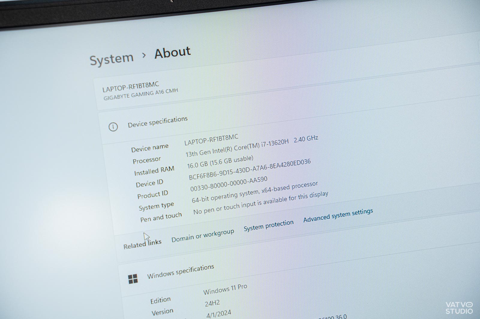 Về màn hình, Gigabyte Gaming A16 sở hữu loạt thông số tiêu chuẩn trong phân khúc. Máy trang bị tấm nền IPS, kích thước 16 inch và tần số quét lên tới 165Hz. Thêm vào đó, tỷ lệ màn hình 16:10 cùng độ phân giải Full HD+ (1920 x 1200 pixels) cũng giúp tăng không gian hiển thị theo chiều dọc, tối ưu hơn cho cả công việc và giải trí.