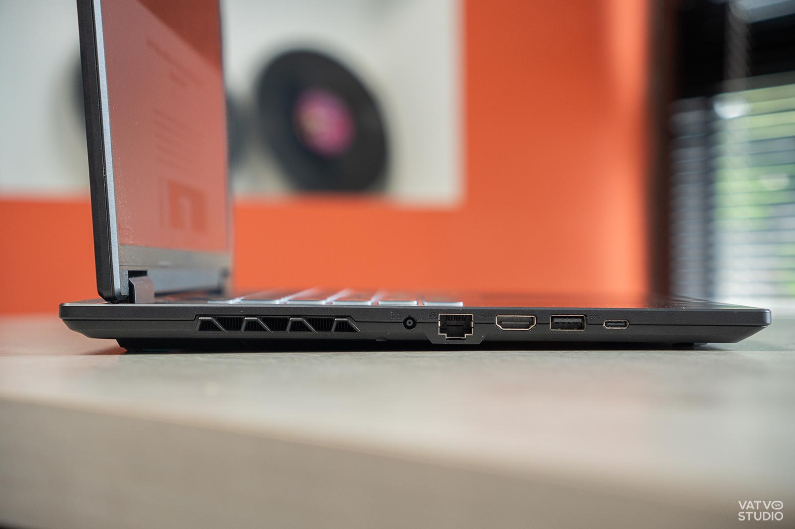 Về cổng kết nối, Gigabyte Gaming A16 được trang bị cực kỳ đầy đủ, đáp ứng mọi nhu cầu của người dùng. Máy có tới 3 cổng USB-A, 1 cổng Type-C (hỗ trợ xuất hình và sạc), cổng mạng LAN, HDMI 2.1 và jack cắm tai nghe 3.5mm. Sự đa dạng này giúp người dùng có thể dễ dàng kết nối với nhiều thiết bị ngoại vi cùng lúc mà không cần đến hub chuyển đổi.