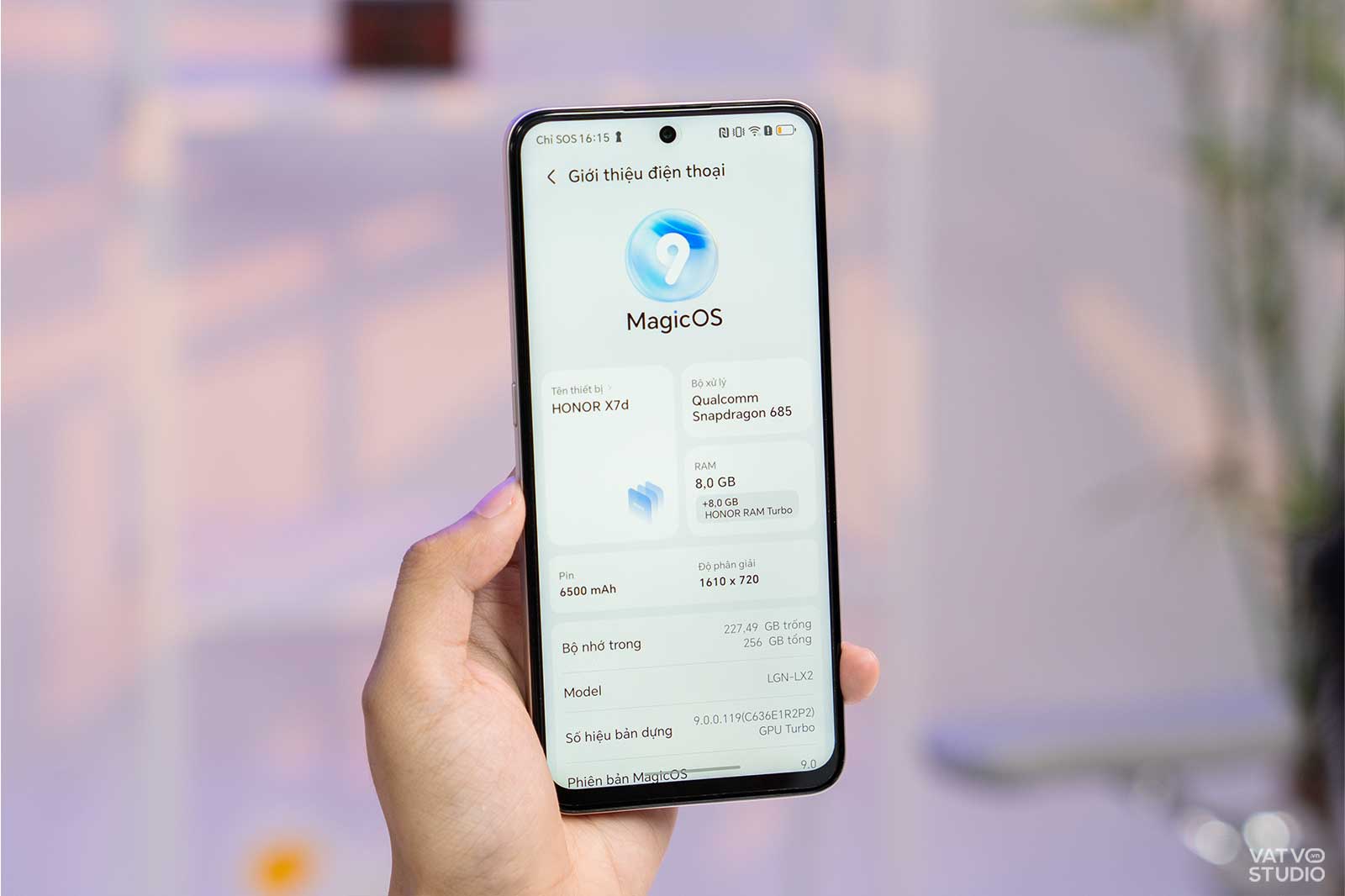 Về hiệu năng, HONOR X7d sử dụng con chip Qualcomm Snapdragon 685, một con chip có hiệu năng không quá cao, chỉ ổn để sử dụng các tác vụ hàng ngày như lướt web, Facebook, xem YouTube. Với sự tối ưu của MagicOS 9, thao tác phản hồi trên chiếc máy này cũng đỡ hơn một chút.