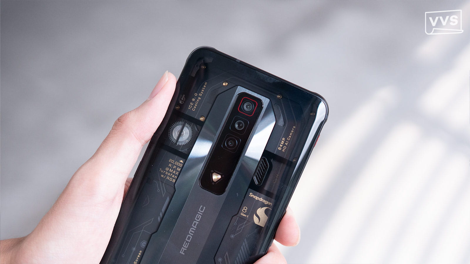 Về thiết kế, Red Magic 7 không có sự thay đổi quá nhiều so với thế hệ tiền nhiệm. Cụm camera ở mặt lưng máy được làm nổi bật cùng dòng chữ “Red Magic” quen thuộc. Năm nay, ZTE mang đến sự khác biệt trên 3 phiên bản khác nhau của Red Magic 7. Phiên bản mình đang có trên tay là Supernova với mặt lưng trong suốt cùng các họa tiết làm nổi bật thông số ấn tượng của máy như con chip Snapragon 8 Gen 1, tần số quét 165Hz, camera AI 64MP, quạt tản nhiệt, v.v. Mặc dù là một mẫu máy Gaming Phone, tuy nhiên Red Magic 7 có trọng lượng khá ấn tượng chỉ 215g, nhẹ hơn khoảng 20g so với ROG Phone 5. Về tổng thể, trải nghiệm cầm nắm của máy đầm, chắc, đậm chất Gaming.