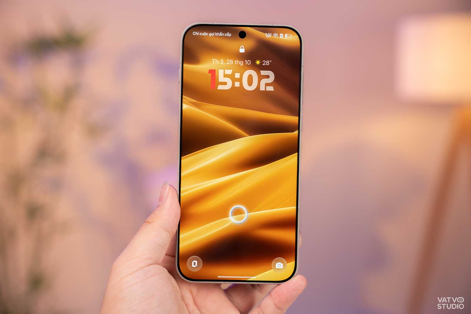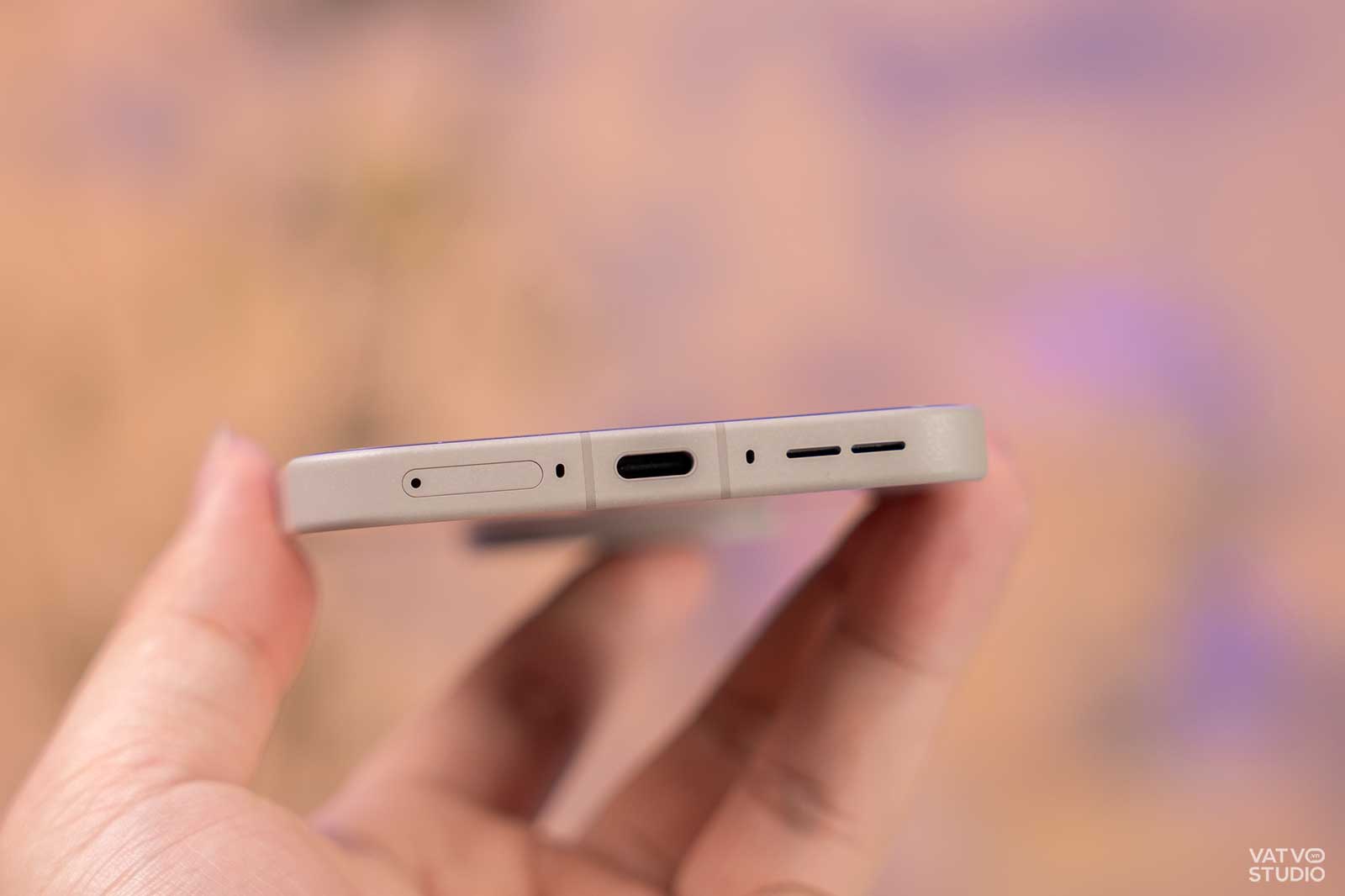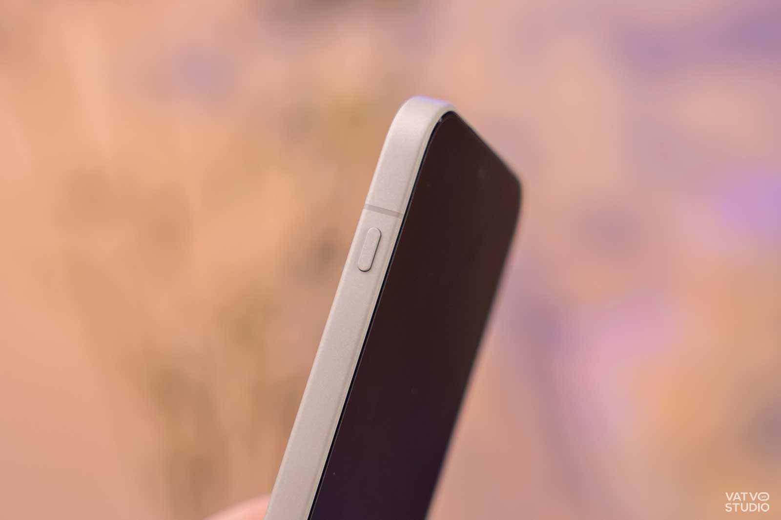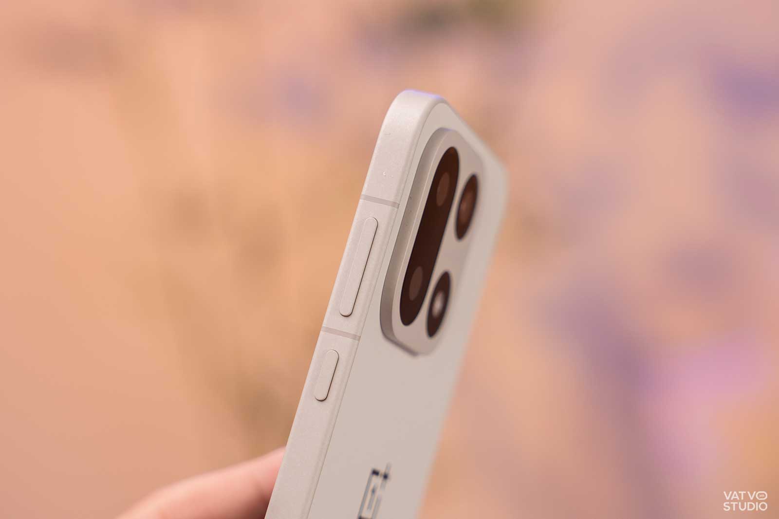 Ngôn ngữ thiết kế trên OnePlus 15 nhìn chung có nhiều điểm đặc biệt. Phiên bản mình trên tay có màu Vàng Cồn Cát (原色沙丘), trông giống màu xi măng, sở hữu mặt lưng kính cùng khung viền kim loại. Đáng chú ý, mặt lưng này được hoàn thiện với cảm giác chạm rất lạ và thú vị. Nó cho cảm giác rất mịn, hơi trơn nhẹ nhưng rất bám tay và chắc chắn. Có thể nói vui là mặt lưng máy “mịn như da em bé” vậy.