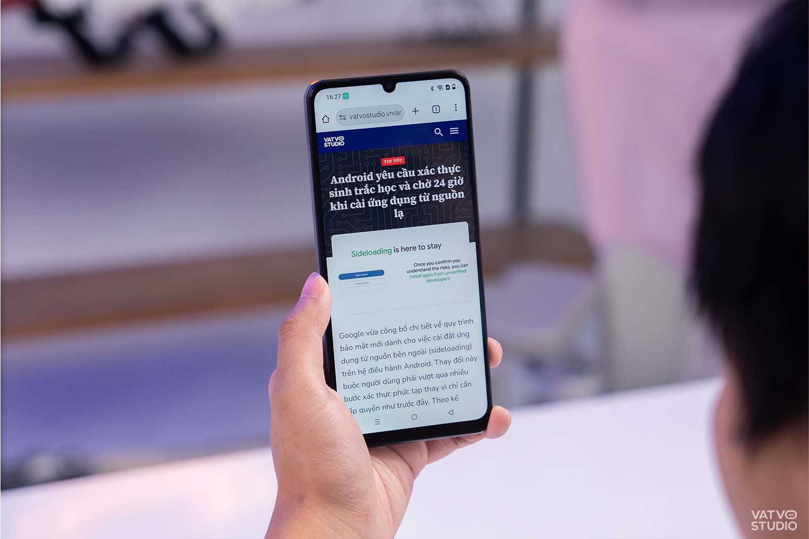 Tuy nhiên, công bằng mà nói thì trải nghiệm hiển thị của máy vẫn chưa có sự đột phá so với thế hệ tiền nhiệm. Dù sở hữu màn hình lớn 6,7 inch cùng tần số quét 90Hz mượt mà, nhưng việc sử dụng tấm nền LCD độ phân giải HD+ khiến các chi tiết hình ảnh chỉ dừng lại ở mức đủ dùng, đôi khi vẫn thấy hiện tượng rỗ nhẹ nếu soi kỹ.