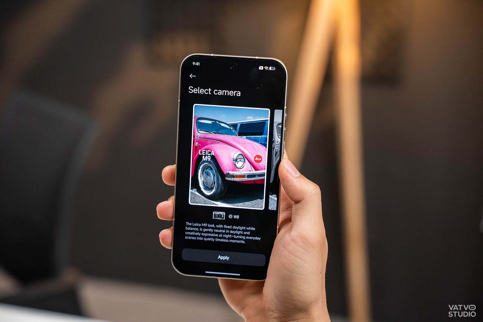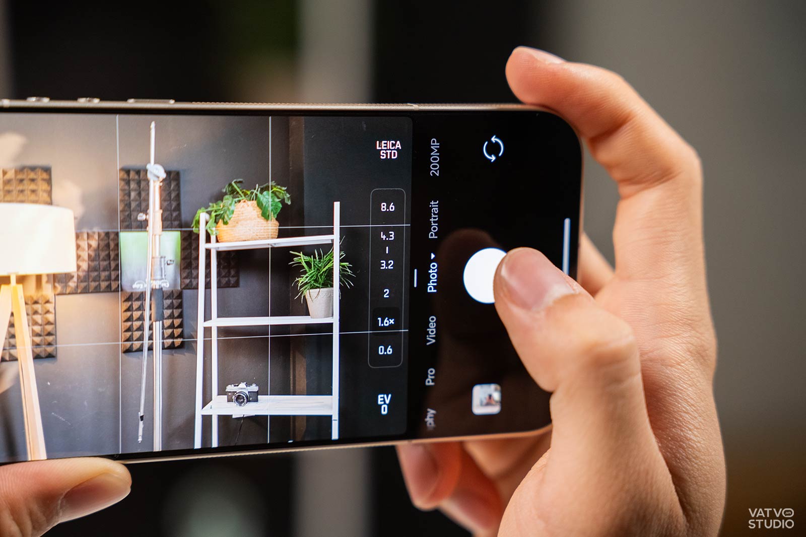 Giao diện chụp ảnh cũng được thiết kế lại theo phong cách tối giản của Leica. Các thông số hiển thị trực quan, chuyên nghiệp, giúp người dùng dễ dàng kiểm soát các yếu tố như ISO, tốc độ màn trập hay cân bằng trắng.