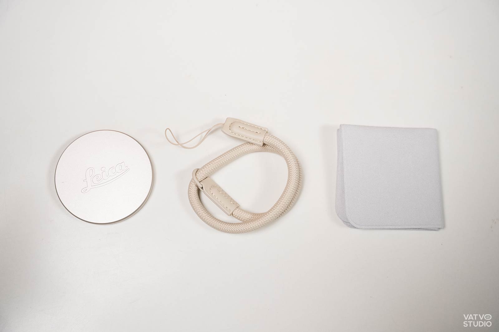 Xiaomi cũng rất tinh tế khi tặng kèm một chiếc khăn lau ống kính chuyên dụng. Chất liệu của khăn rất mềm mịn, có in logo Leica, mang lại cảm giác sang trọng tương tự như khăn lau màn hình của Apple. Một phụ kiện độc đáo khác là dây đeo tay (Wrist strap) thời trang. Người dùng có thể gắn dây này vào ốp lưng đi kèm, giúp thao tác chụp ảnh trở nên an toàn hơn, tránh tình trạng rơi vỡ khi tác nghiệp.