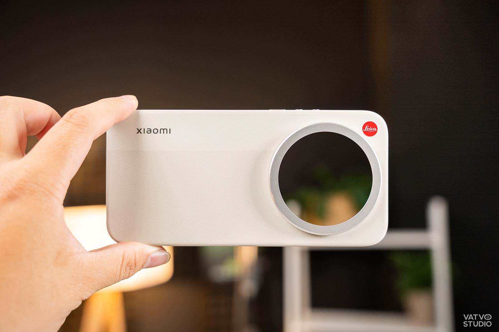 Về thiết kế tổng thể, phiên bản Xiaomi 17 Ultra by Leica hôm nay sở hữu màu vàng kem sữa đẹp mắt. Mặt lưng máy được hoàn thiện từ chất liệu giả da, mang lại cảm giác cầm nắm êm ái, sang trọng và hạn chế bám mồ hôi. Điểm nhấn lớn nhất nằm ở cụm camera tròn lớn với logo Leica được in dập nổi đầy kiêu hãnh. Chưa kể, cạnh viền của máy được thiết kế với các đường gờ nổi giúp tăng độ ma sát. Nhờ đó, việc cầm nắm thiết bị bằng một tay, ngay cả khi không sử dụng ốp lưng, vẫn rất chắc chắn và đầm tay.