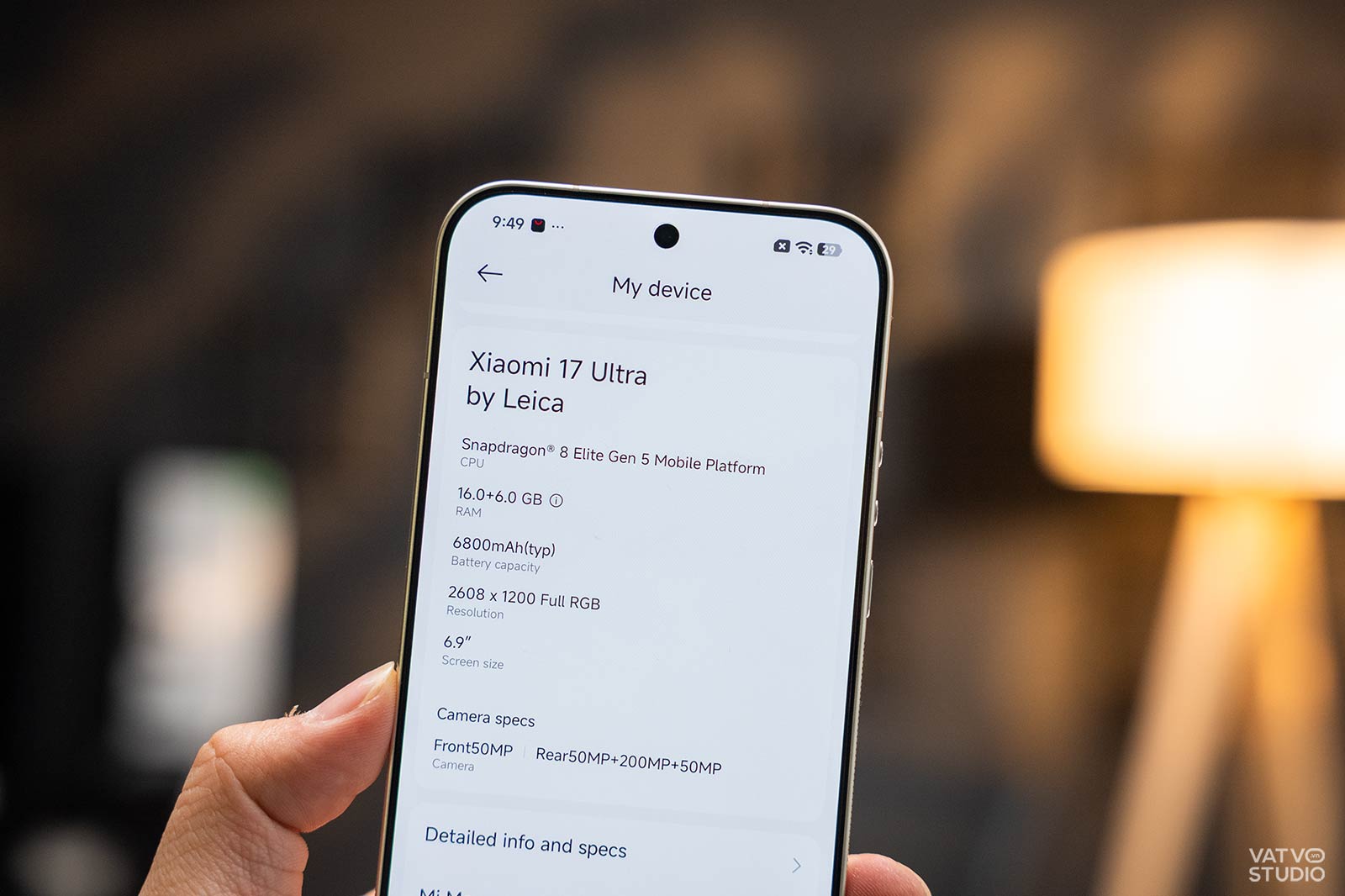Cung cấp sức mạnh cho máy là con chip Snapdragon 8 Elite Gen 5 mới nhất của Qualcomm. Dù là bản thử nghiệm nhanh, các tác vụ vuốt chạm, xử lý ảnh hay mở ứng dụng đều diễn ra mượt mà, phản hồi tức thì. Các thông số khác của máy bao gồm màn hình 6,9 inch LTPO AMOLED, độ sáng 3.500 nits, đạt chuẩn IP69 cao cấp. Viên pin của sản phẩm có dung lượng 6.800mAh và hỗ trợ sạc nhanh 90W