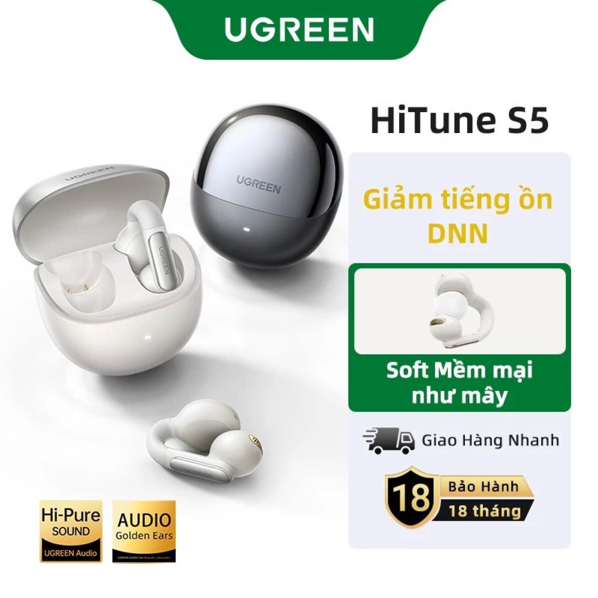 Với những ai không đeo được các dạng tai nghe in-ear hay earbuds, người dùng có thể lựa chọn sang các sản phẩm dạng kẹp tai. Ở mảng này, UGREEN cũng bán sản phẩm có tên UGREEN S6 Magic (mã 55136), với điểm nhấn là case sạc có màn hình cảm ứng 1,6 inch. Màn hình này cho phép điều khiển nhạc, âm lượng, hiển thị lời bài hát và dùng làm nút chụp ảnh từ xa. Công nghệ Chống rò rỉ âm thanh (Zero Sound Leakage) đảm bảo sự riêng tư.
