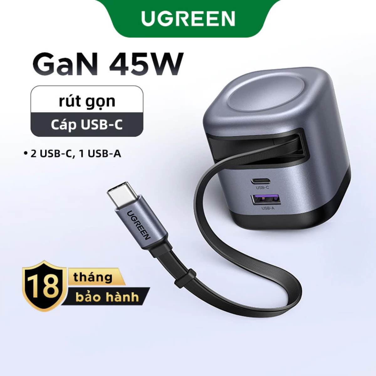 Sạc UGREEN 45W GaN (Kèm cáp rút tiện lợi)