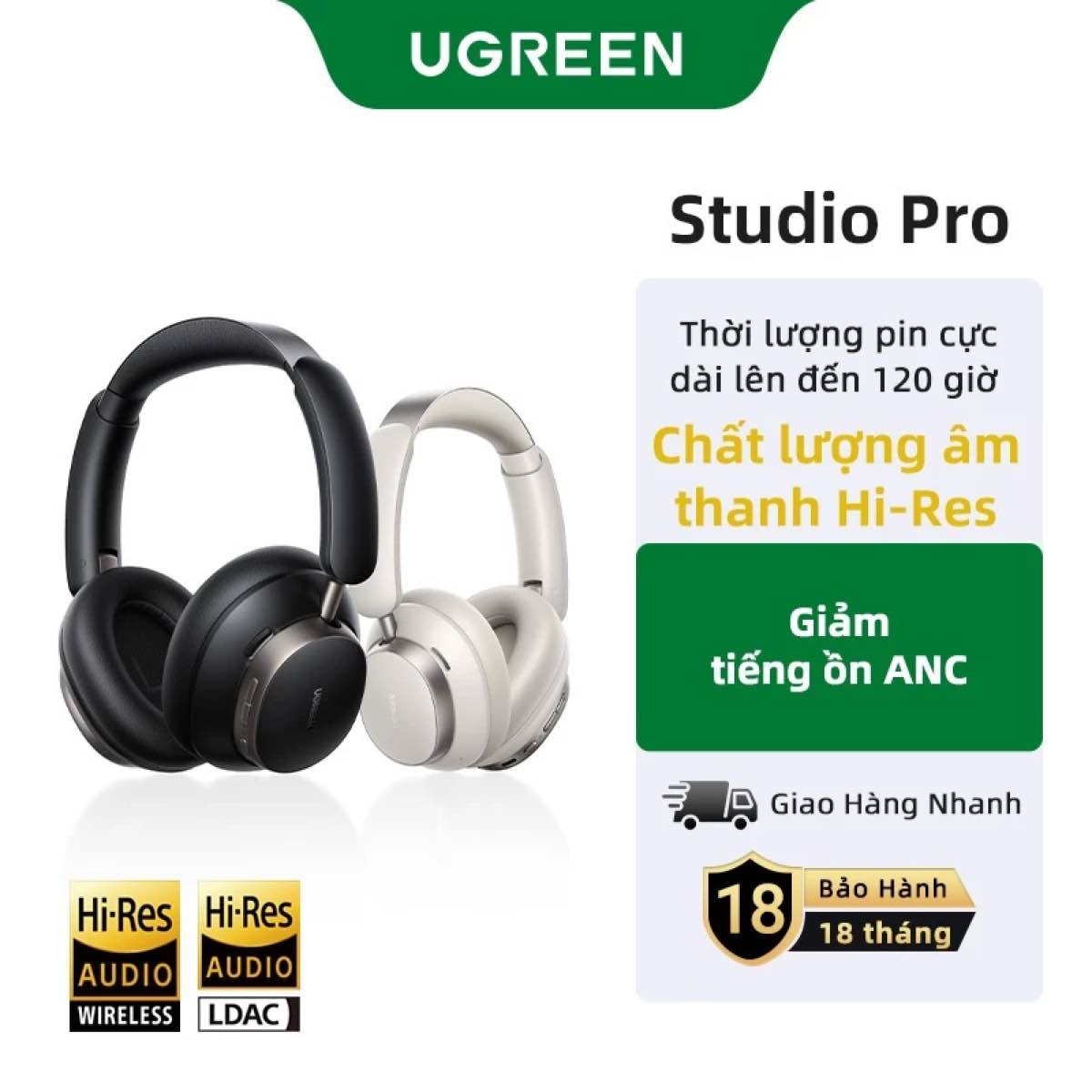 Phiên bản nâng cấp mới (mã 55687), UGREEN Max6 Studio Pro đẩy giới hạn chống ồn lên ANC thích ứng thông minh 48dB. Điểm đắt giá nằm ở hệ thống Driver kép đồng trục 40mm + 12mm, mang lại âm trường cân bằng. Tai nghe này cũng đạt chứng nhận Hi-Res, hỗ trợ LDAC và có thời lượng pin “khủng” lên đến 120 giờ.