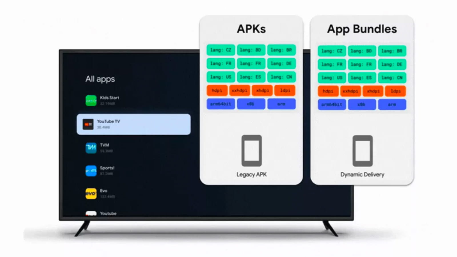 Trong thông báo mới nhất, Google cho biết kể từ tháng 5 năm 2023, các ứng dụng trên Android TV hay Google TV sẽ phải được đóng gói dưới định dạng Android App Bundle (AAB). Điều này đồng nghĩa, rất có khả năng tệp tin APK truyền thống sẽ không thể sử dụng và cài đặt trên Android TV nữa.
