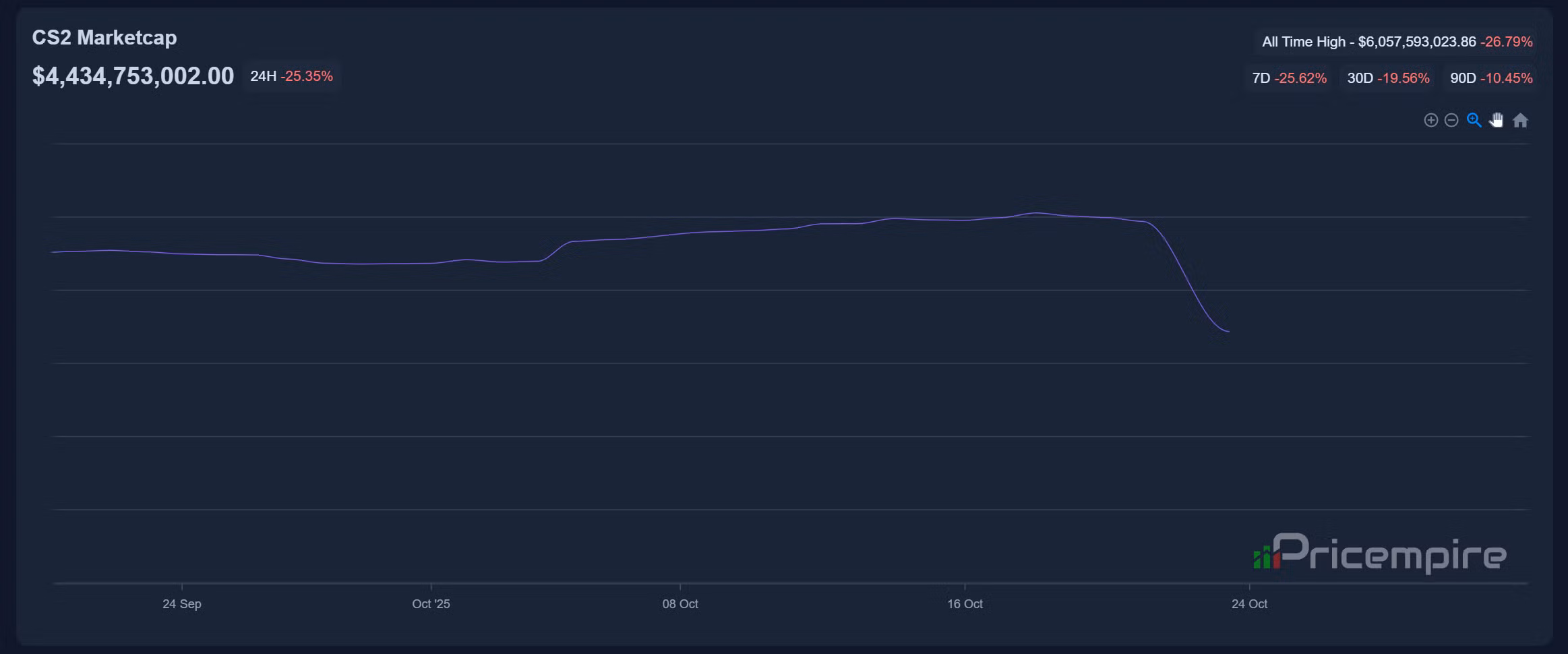 Theo Bloomberg và trang phân tích Price Empire, vốn hóa thị trường đã sụt giảm 1,75 tỷ USD chỉ sau một đêm. Các báo cáo sau đó 29 giờ cho thấy con số thiệt hại đã lên tới 2,4 tỷ USD. Giá của nhiều loại dao và găng tay giảm mạnh, một số mất tới 43% giá trị. Ngược lại, các skin Covert (màu đỏ) được dùng làm “nguyên liệu” trao đổi lại tăng giá phi mã, có loại tăng 67%.