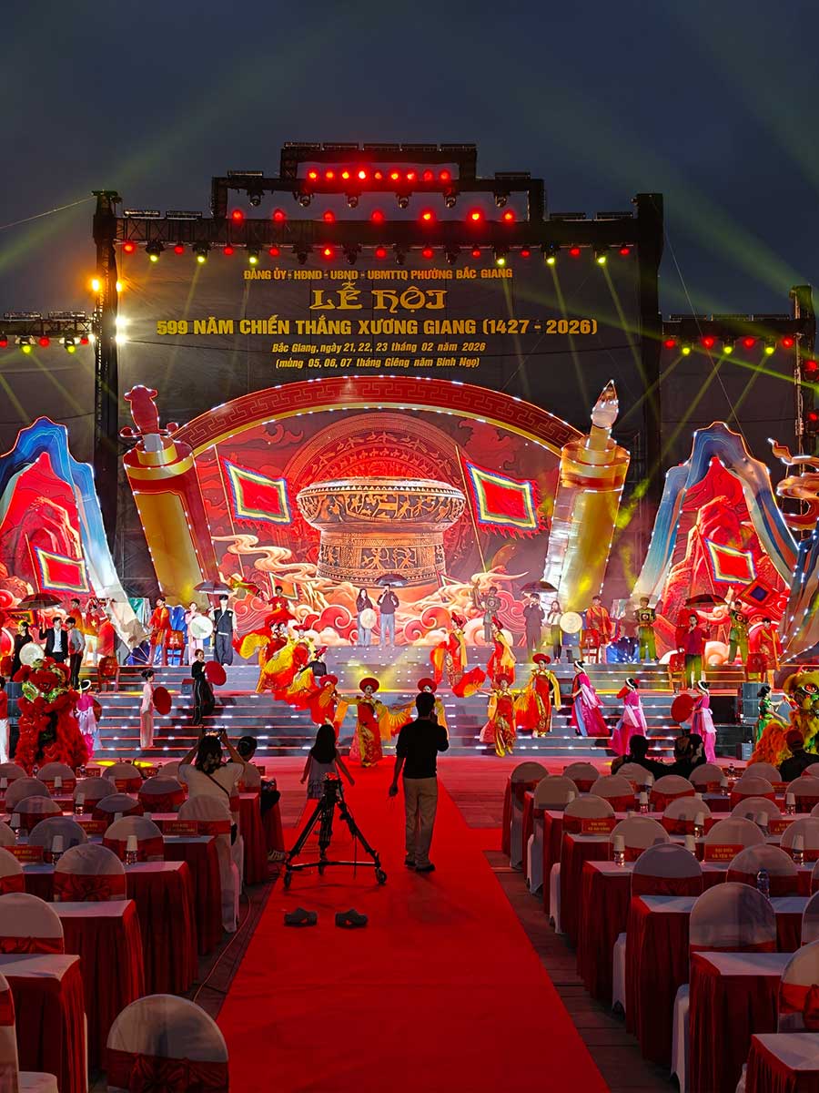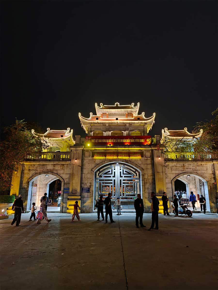 Để đáp ứng nhu cầu sử dụng cường độ cao như dịp Tết, camera là yếu tố mình ưu tiên hàng đầu, và OPPO Find X9 Pro hoàn toàn làm tốt vai trò này. Điểm nhấn trong những ngày Tết ở quê mình chính là Lễ hội kỷ niệm 599 năm chiến thắng Xương Giang tại Bắc Giang. Mình đến khu di tích vào buổi tối, thời điểm mà các hoạt động tế lễ và biểu diễn nghệ thuật diễn ra sôi nổi nhất. Đây là một môi trường ánh sáng cực kỳ phức tạp với sự đan xen giữa ánh đèn lồng rực rỡ, đèn LED sân khấu mạnh và những khoảng tối sâu của khu thành cổ. Đây chính là lúc mình kiểm chứng năng lực thực tế của cụm camera trên Find X9 Pro thay vì chỉ nhìn vào các thông số trên giấy tờ.