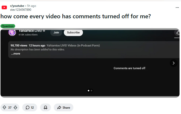Sự cố bắt đầu lan rộng trên cộng đồng Reddit khi nhiều tài khoản phản ánh giao diện video trên YouTube bị trống phần nội dung phía dưới. Cụ thể, phần mô tả chi tiết và các lượt thảo luận đều biến mất, gây ảnh hưởng trực tiếp đến trải nghiệm xem video.