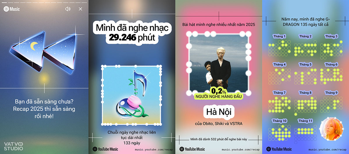 Nhìn chung, YouTube Music Recap 2025 vẫn là một bản tổng kết thú vị và đầy màu sắc để chia sẻ lên mạng xã hội. Các biểu đồ nhiệt (heatmap) về thói quen nghe nhạc hay các danh hiệu người hâm mộ cũng được làm rất chỉn chu. Nếu bạn cũng đang dùng YouTube Music, hãy vào ngay ứng dụng, bấm vào avatar của mình và chọn “Recap” để xem năm nay bạn đã “cày” bài nào nhiều nhất nhé.